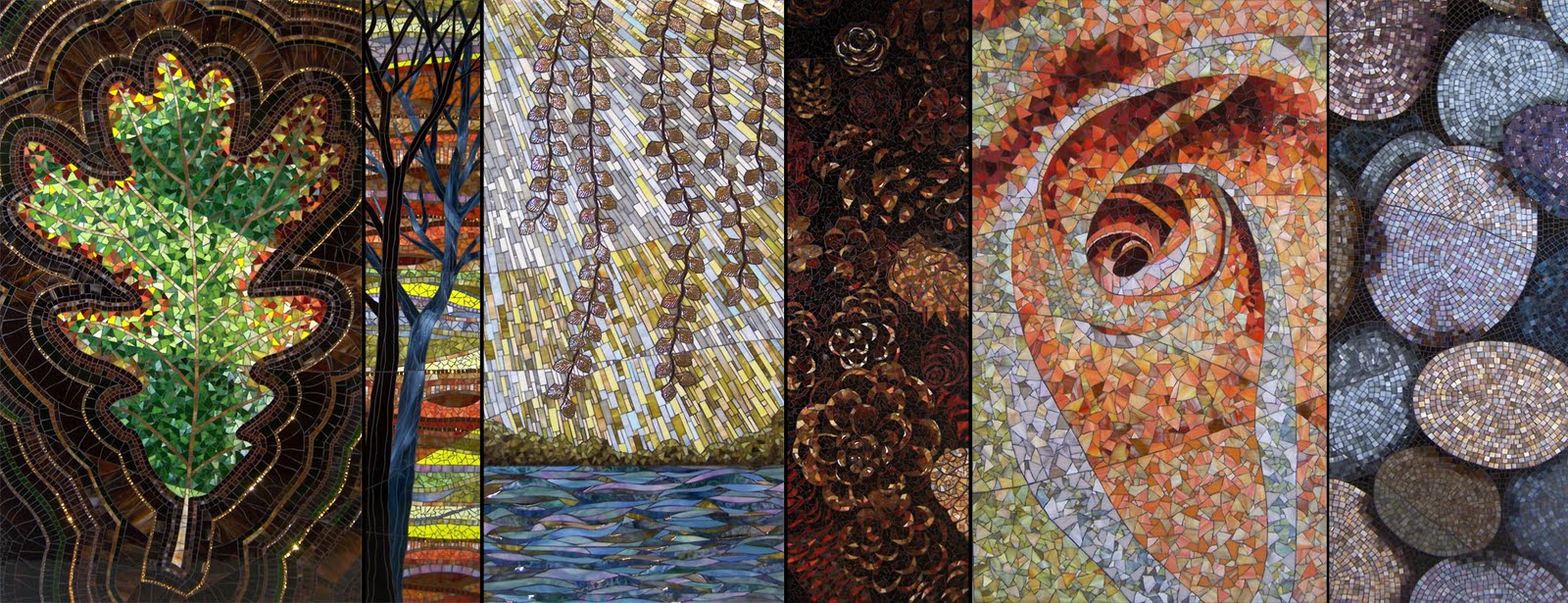 I'm working on a large mosaic mural. It will be made up of six panels. I just finished grouting the first panel, a giant leaf 5'h x 3'w.
